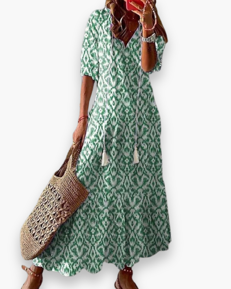 Damen Maxi Kleid mit A-Linie und V-Ausschnitt